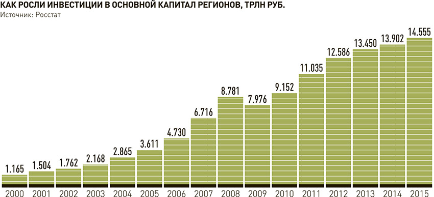 В целом прирост инвестиций в основной капитал в 2015 году составил 653,257 миллиарда рублей в номинальном выражении, что даже больше, чем в 2014-м: тогда было менее 453 миллиардов. А в 2009 году инвестиции серьезно сократились – на 805,6 миллиарда. На этот раз достичь неплохой динамики удалось за счет переоценки валютных курсов. Теперь главное – удержать планку.